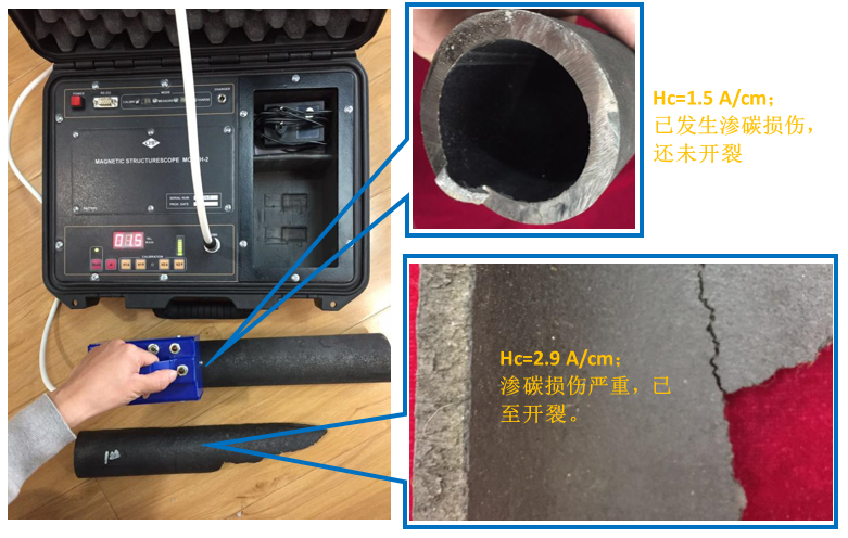 The Hysteresis nondestructive evaluation technology, no need to cut pipe, no need to polish the workpiece surface, can be directly measured and evaluated on the spot, data collection only 3 seconds, is the only feasible new technology for nondestructive evaluation of furnace tube carburizing damage.