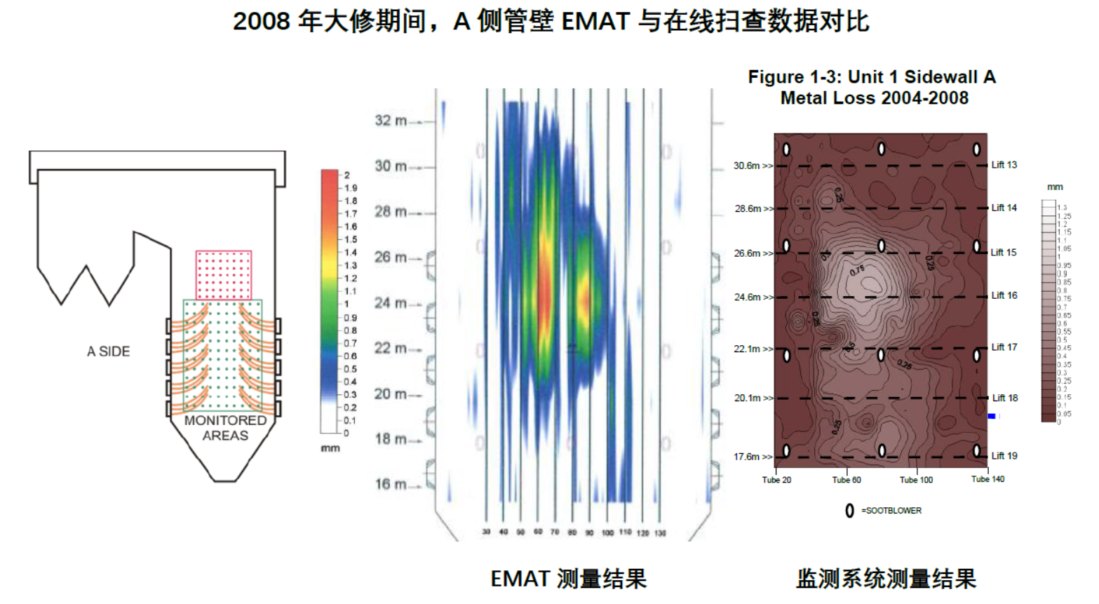 - 采用非介入式變溫電阻矩陣掃查技術,(即傳感器安裝在水冷壁背火側,監(jiān)測向火側的失效行為),至今發(fā)展30余年,榮獲過多項國際專利,并獲得美國EPRI認證,在英國、美國、韓國等各大電廠均有廣泛地應用。